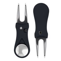 This golf divot tool is constructed from metal and ABS materials, designed to mark your spot on the green and repair divots. It includes a push-button mechanism to release the switchblade. When it is free, it could be folded so as to save space and keep safe.You have the option to showcase your logo on either the removable magnetic ball marker or the ABS body of the tool.